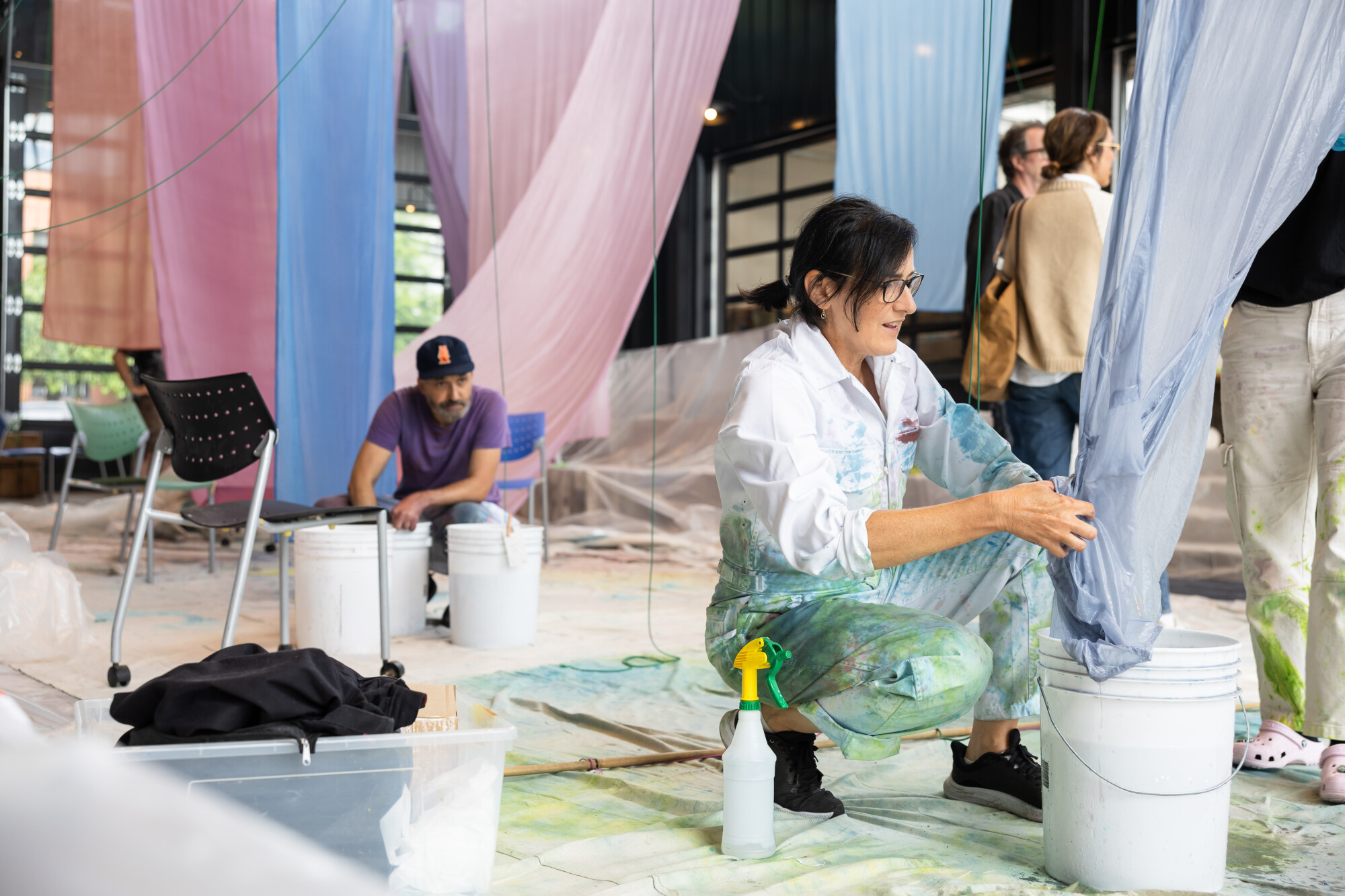 McGill has developed this site-specific natural color story in collaboration with Jason Logan of the Toronto Ink Company. Together, McGill and Logan gathered and worked with natural and found material from the waters and shoreline to collaborate with the creative expression of the lake itself. Featuring materials such as goldenrod, clay, algae, red brick, and wild grape sourced from Leslie Street Spit, Gibraltar Point, and the re-naturalized Don River among others, these colours have been used to create vibrant wind-activated colour field paintings that dance above the canoe procession to communicate Lake Ontario’s vibrant resilience both above and below its waters. Together water, colour, wind, and paddlers find and speak the lake’s language and tell its vital story. McGill collaborated with Elder Duke Redbird, whose insights, stories, perspectives and wisdom have guided A Lake Story since its earliest stages .